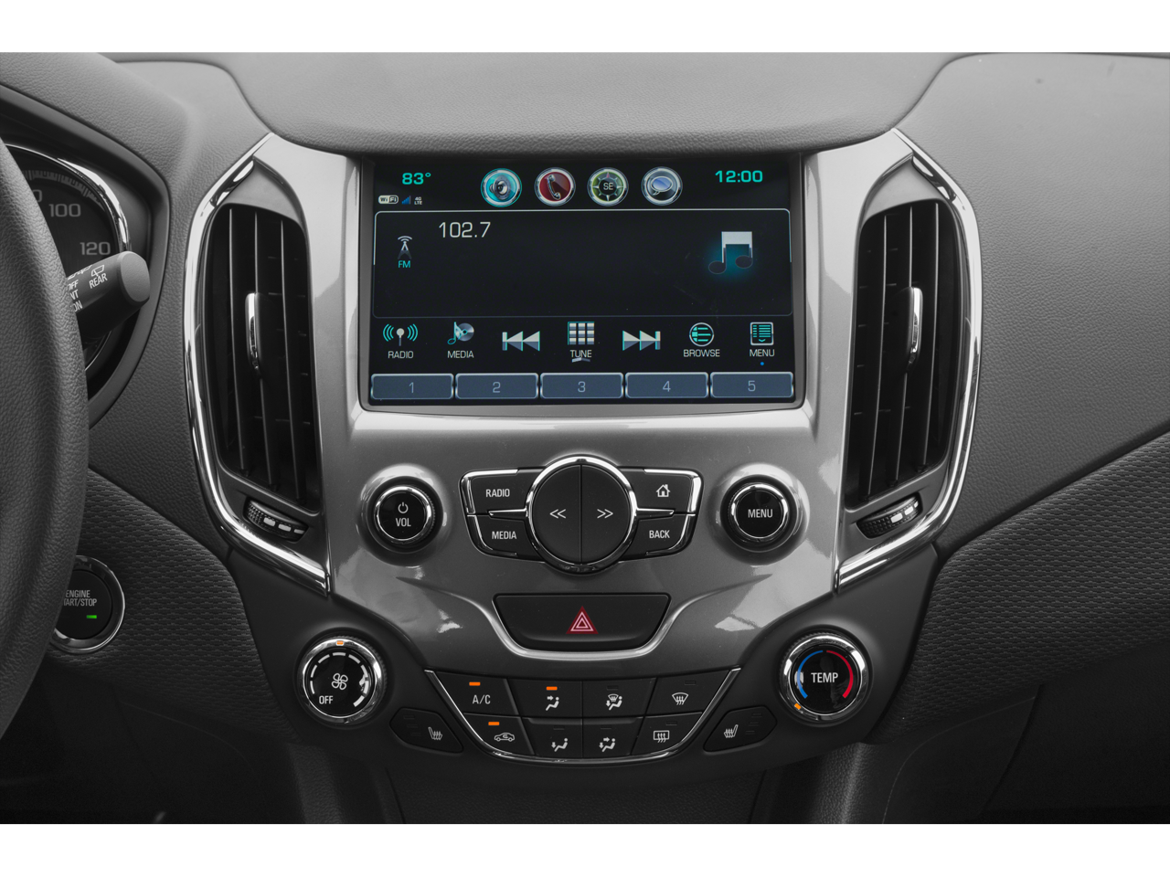 CONVENIENCE PACKAGE includes (ATH) Keyless Open, (BTM) Keyless Start, (KA1) heated driver and front passenger seats and (AH5) driver 8-way power seat adjuster, and (BTV) remote vehicle starter system [with automatic transmission only]; deletes (KTF) primary foldable key, REDLINE EDITION includes (CG6) Black emblems with Red outline, (MDB) Black beltline moldings, Black front grille surround, Black fog lamp surround, (RQK) 18" aluminum wheels, (REW) P225/40R18 all-season, blackwall tires and (GNG) rear suspension, RS PACKAGE includes (T43) rear spoiler, (T3U) front fog lamps, (BVG) sport body kit and (E38) RS lettering ornamentation, KEYLESS OPEN, AUDIO SYSTEM, CHEVROLET MYLINK RADIO WITH 7" DIAGONAL COLOR TOUCH-SCREEN AM/FM stereo with seek-and-scan and digital clock, includes Bluetooth® streaming audio for music and select phones; featuring Android Auto® and Apple CarPlay® capability for compatible phone (STD), 1.4L TURBO DOHC 4-CYLINDER DI with Continuous Variable Valve Timing (CVVT) (153 hp [114.08 kW] @ 5600 rpm, 177 lb-ft of torque [239 N-m] @ 2000-4000 rpm) (STD), 6-SPEED AUTOMATIC (STD). Chevrolet LT with BLACK exterior and JET BLACK interior features a 4 Cylinder Engine with 153 HP at 5600 RPM*.