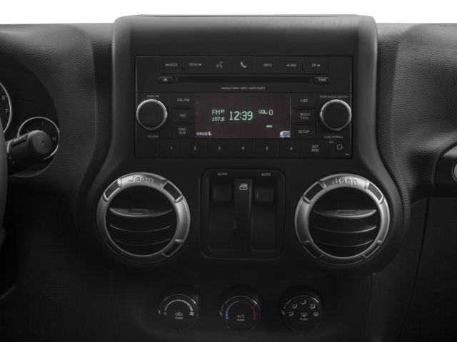 TRANSMISSION: 5-SPEED AUTOMATIC (W5A580): Tip Start, Hill Descent Control, RADIO: 430 NAV: 6.5 Touchscreen Display, Remote USB Port, 40GB Hard Drive w/28GB Available, GPS Navigation, SiriusXM Travel Link, BLACK 3-PIECE HARD TOP: Freedom Panel Storage Bag, Rear Window Defroster, Rear Window Wiper/Washer, Delete Sunrider Soft Top, CONNECTIVITY GROUP: Vehicle Information Center, Uconnect Voice Command w/Bluetooth®, Tire Pressure Monitoring Display. Keyless Entry, Privacy Glass, Steering Wheel Controls, Rollover Protection System, Electronic Stability Control.