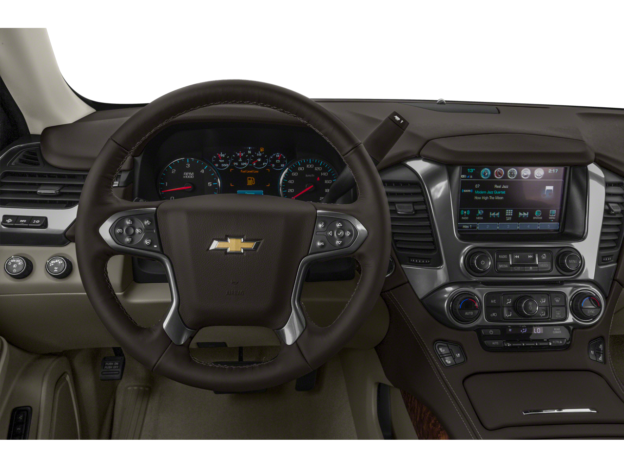 SUN, ENTERTAINMENT AND DESTINATIONS PACKAGE, (CF5) power sunroof, (U42) rear seat DVD entertainment system and (IO6) 8 diagonal color touch-screen Navigation with Chevrolet Infotainment, WHEELS, 22 X 9 (55.9 CM X 22.9 CM) 6-SPOKE CHROME MULTI-FEATURED DESIGN, ENTERTAINMENT SYSTEM, REAR SEAT, BLU-RAY/DVD with remote control, overhead display, Wi-Fi wireless projection capability, four 2-channel wireless digital headphones, auxiliary HDMI/MHL audio/video input and 2 USB ports, ASSIST STEPS, POWER-RETRACTABLE with bright accent strip and perimeter lighting, THEFT PROTECTION PACKAGE, BODY SECURITY CONTENT includes (UTR) self-powered horn, (UTV) interior movement and (UTU) vehicle inclination sensors, door and liftgate lock shields, and glass break sensors in rear quarter glass and liftgate window, removes sunglass holder and conversation mirror from overhead console, SEATS, FRONT BUCKET WITH PERFORATED LEATHER-APPOINTED HEATED AND VENTILATED SEAT CUSHIONS 12-way power driver and passenger seat includes 6-way power cushions, driver seat 2-position memory, 4-way power lumbar control and power recline (STD), AUDIO SYSTEM, 8 DIAGONAL COLOR TOUCH-SCREEN NAVIGATION WITH CHEVROLET INFOTAINMENT AM/FM stereo with seek-and-scan and digital clock, includes Bluetooth® streaming audio for music and select phones; voice-activated technology for radio and phone; and Shop with the ability to browse, select and install apps to your vehicle. You can customize your content with audio, weather and more; featuring Apple CarPlay® and Android Auto® capability for compatible phone; 5 USB ports and 1 auxiliary jack (STD), ENGINE, 5.3L ECOTEC3 V8 with Active Fuel Management, Direct Injection and Variable Valve Timing, includes aluminum block construction (355 hp [265 kW] @ 5600 rpm, 383 lb-ft of torque [518 N-m] @ 4100 rpm) (STD), TRANSMISSION, 6-SPEED AUTOMATIC, ELECTRONICALLY CONTROLLED with overdrive and tow/haul mode (STD). Originally bought here, Local Trade, LOCATED AT HUBLER HONDA IN TAYLORSVILLE