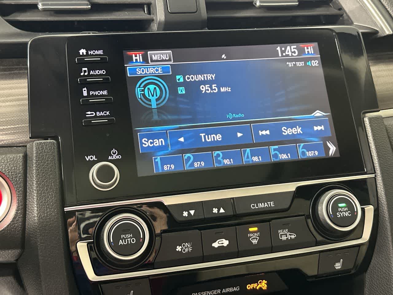 - Radio: 180-Watt AM/FM/HD/SiriusXM Audio System -inc: 8 speakers, 7-inch display w/high-resolution electrostatic touch-screen, knob and hard keys for primary controls and customizable feature settings, Bluetooth® HandsFreeLink, Bluetooth® streaming audio, radio data system (RDS), speed-sensitive volume compensation (SVC), 1.5-amp USB smartphone/audio interface in front, 1.0-amp USB audio interface port in center console, HondaLink, Apple CarPlay integration, Android Auto integration, SMS text message function, fin-type roof-mounted antenna and illuminated steering wheel-mounted controls