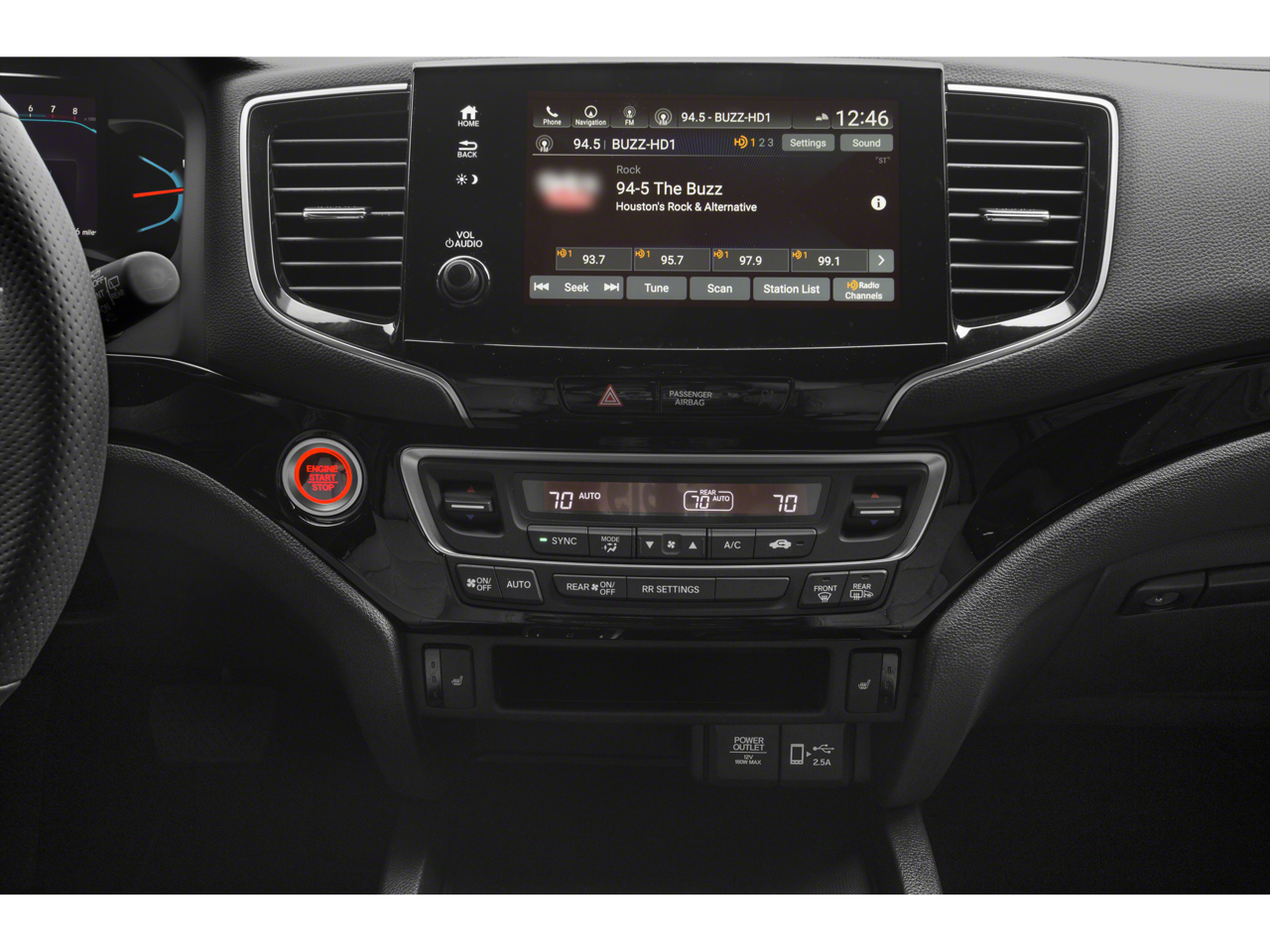 - Radio: 540-Watt Premium Audio System w/10 Speakers -inc: subwoofer, 8" display audio w/high-resolution electrostatic touch-screen and customizable feature settings, Bluetooth® HandsFreeLink, Bluetooth® streaming audio, MP3/auxiliary input jack in center console, Radio Data System (RDS), Speed-Sensitive Volume Compensation (SVC), (3) 2.5-amp USB charging ports, 12-volt power outlets in front console, center console and cargo area, HondaLink, Apple CarPlay integration, Android Auto integration, CabinControl remote compatibility, SMS text message function, SiriusXM radio, HD Radio, Wi-Fi hotspot capability (requires AT&T data plan), 2.5-amp USB smartphone/audio interface port in front console, Honda Satellite-Linked Navigation System w/voice recognition and Honda HD digital traffic, 115-volt power outlet and HondaLink subscription services SiriusXM services require a subscription after any trial period. Honda HD digital traffic service is only available in the United States, except Alaska.