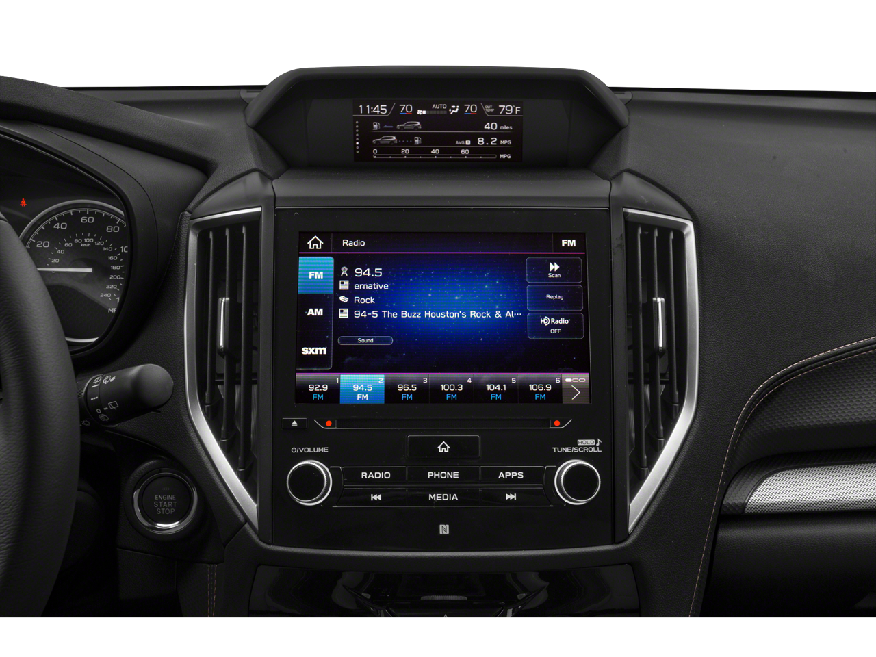 - Radio: Subaru Starlink 8.0" Multimedia Plus System -inc: AM/FM stereo HD Radio w/single-disc CD player w/MP3/WMA/CRR/RW file capability, multi-touch gesture high resolution display, 8.0" LCD screen, voice activated controls, Bluetooth® audio streaming connectivity, hands-free phone connectivity and hands-free SMS text messaging connectivity, Near Field Communication (NFC), iPod control capability, rear-vision camera display, SiriusXM All Access radio and Travel Link (subscription required), smartphone integration: AHA, Android Auto, CarPlay and Pandora, Starlink cloud applications: refer to subaru.com for app availability, dual USB input ports, 3.5mm auxiliary input jack, 6 speakers and body color roof mounted antenna