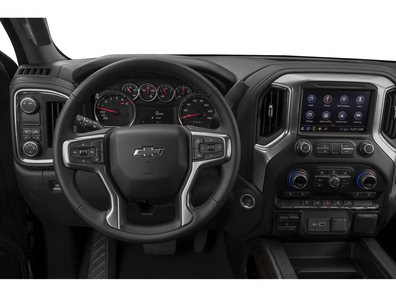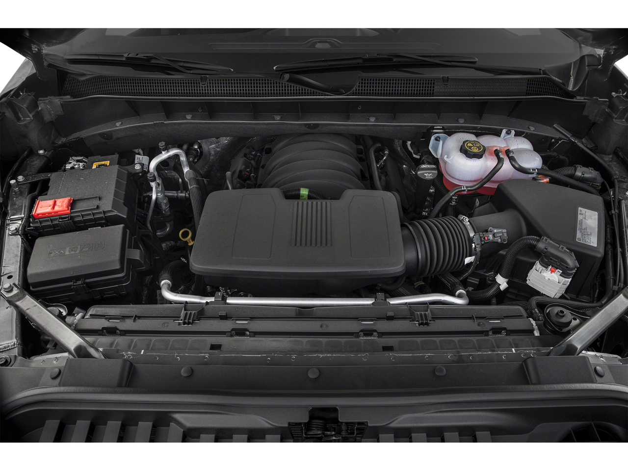 ENGINE, 5.3L ECOTEC3 V8 (355 hp [265 kW] @ 5600 rpm, 383 lb-ft of torque [518 Nm] @ 4100 rpm); featuring available Dynamic Fuel Management that enables the engine to operate in 17 different patterns between 2 and 8 cylinders, depending on demand, to optimize power delivery and efficiency (NOTE: Certain 21MY vehicles will include (YK9) Not Equipped with Dynamic Fuel Management.), Z71 OFF-ROAD PACKAGE includes (Z71) Off-Road suspension, (JHD) Hill Descent Control, (NZZ) skid plates and (K47) heavy-duty air filter Includes Z71 hard badge, (N10) dual exhaust, (PZX) 18" bright silver painted wheels, (XCK) 265/65R18 all-terrain, blackwall tires and (NQH) 2-speed transfer case. 6" RECTANGULAR (dealer-installed), BED PROTECTION PACKAGE includes (B1J) wheel house liners and (CGN) Chevytec spray-on bedliner, CONVENIENCE PACKAGE WITH BUCKET SEATS includes (A50) bucket seats, (D07) center console, (CJ2) dual-zone automatic climate control, (A2X) 10-way power driver seat including power lumbar, (KA1) heated driver and passenger seats, (KI3) heated steering wheel and (N37) manual tilt-telescoping steering column; and includes (SNR) Up-level Rear Seat with Storage Package.), AUDIO SYSTEM, CHEVROLET INFOTAINMENT 3 SYSTEM 8" diagonal color touchscreen, AM/FM stereo. Additional features for compatible phones include: Bluetooth® audio streaming for 2 active devices, voice command pass-through to phone, wired Apple CarPlay® and Android Auto® capable. (STD), TRANSMISSION, ELECTRONICALLY CONTROLLED with overdrive and tow/haul mode. Includes Cruise Grade Braking and Powertrain Grade Braking (STD). Chevrolet RST with BLACK exterior and JET BLACK interior features a 8 Cylinder Engine with 310 HP at 5600 RPM*.