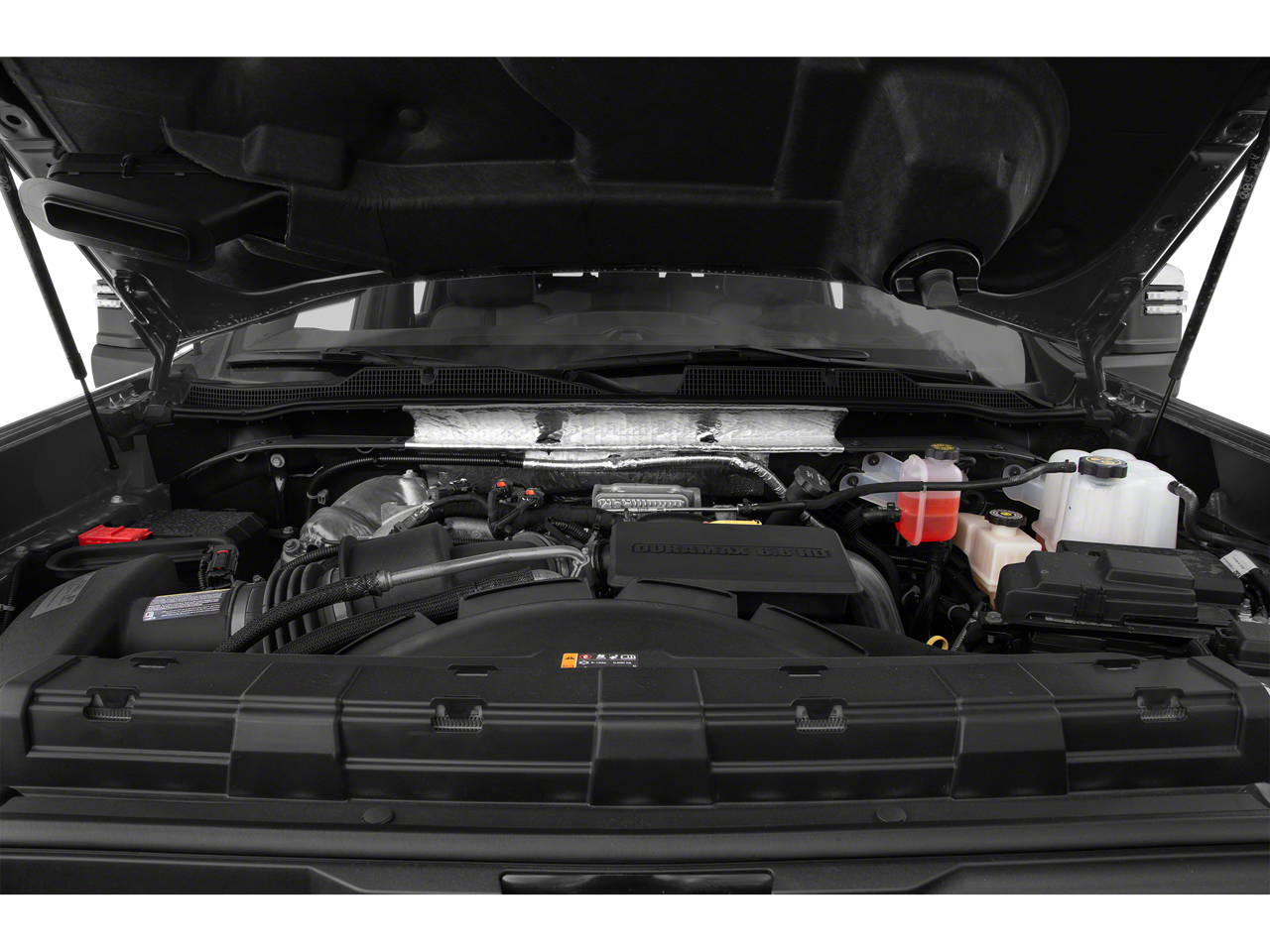 ENGINE, DURAMAX 6.6L TURBO-DIESEL V8 B20-Diesel compatible, (445 hp [332 kW] @ 2800 rpm, 910 lb-ft of torque [1220 Nm] @ 1600 rpm), 20 (50.8 CM) HIGH GLOSS BLACK ALUMINUM WHEELS LPO wheels will come with 4 aluminum 20 transit wheels from the factory with alignment specs set to 20 LPO wheel selected (dealer-installed), SUNROOF, POWER ON CREW CAB MODELS, SAFETY PACKAGE II includes (UEU) Forward Collision Alert, (UFL) Lane Departure Warning, (UHY) Automatic Emergency Braking, (TQ5) IntelliBeam headlamps, (UE4) Following Distance Indicator and (HS1) Safety Alert Seat, TAILGATE, MULTI-FLEX with six functional load/access features, NOTE: Auto release can be disabled if ball hitch is installed. See Owners manual for details, CHEVROLET INFOTAINMENT 3 PREMIUM SYSTEM WITH CONNECTED NAVIGATION 8 diagonal HD color touchscreen, AM/FM stereo, Bluetooth® audio streaming for 2 active devices, wireless Apple CarPlay® and Android Auto® capable, enhanced voice recognition, additional memory for in-vehicle apps, cloud connected personalization for select infotainment and vehicle settings. Subscription required for enhanced and connected services after trial period. (STD) (Includes (PZ8) High Guidance with Hitch View.), ALLISON 10-SPEED AUTOMATIC. Chevrolet High Country with Summit White exterior and Jet Black interior features a 8 Cylinder Engine with 401 HP at 5200 RPM*.