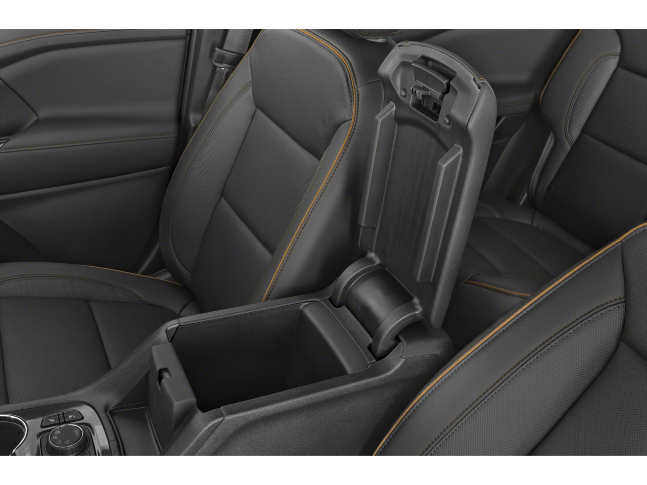 - Console, front center with 2 cup holders and storage, includes rear storage drawer