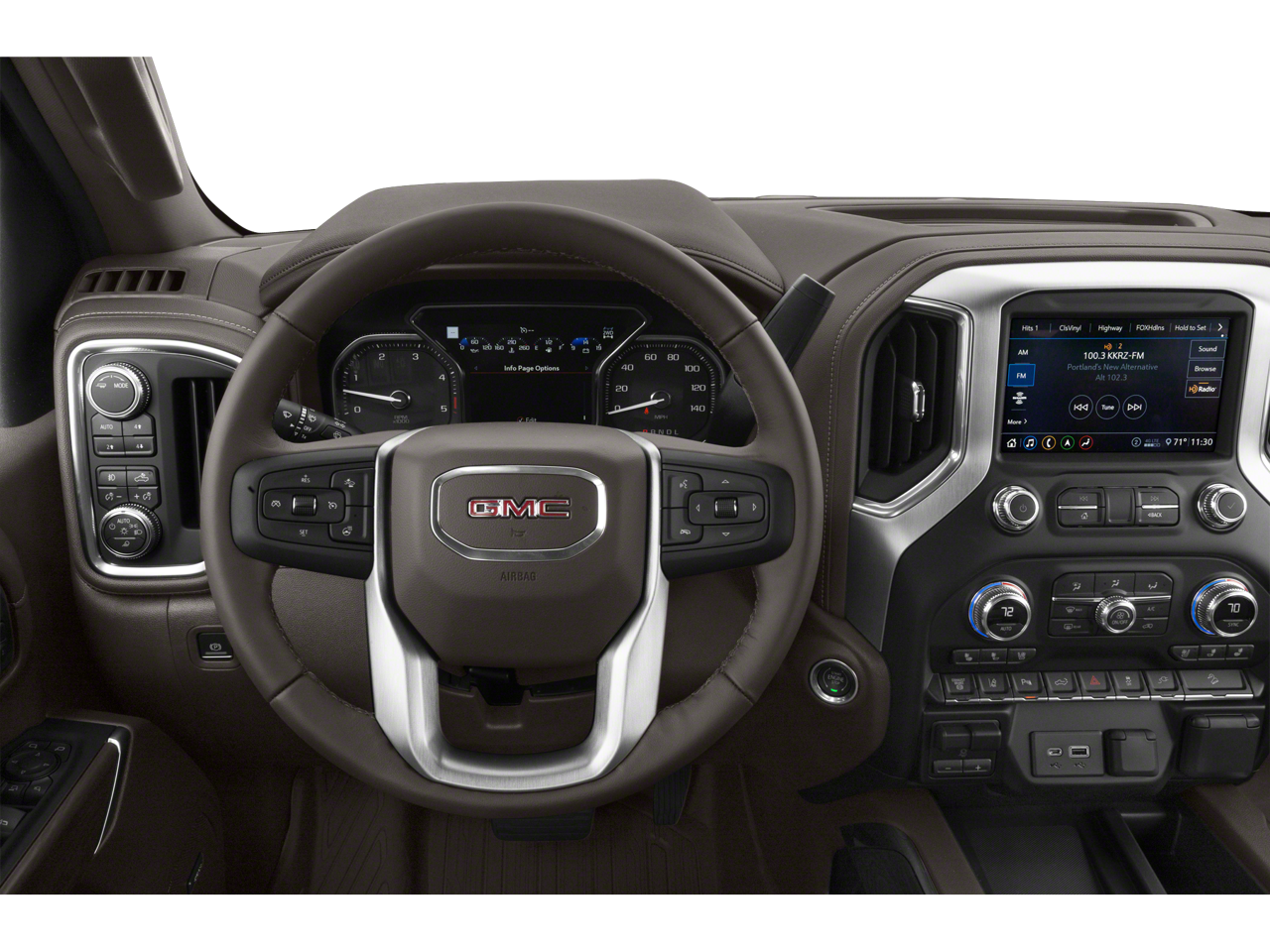 - Audio system, GMC Infotainment System with 8" diagonal color touchscreen, AM/FM stereo with seek-and-scan and digital clock, includes Bluetooth® streaming audio for music and select phones; featuring wired Android Auto and Apple CarPlay capability for compatible phones