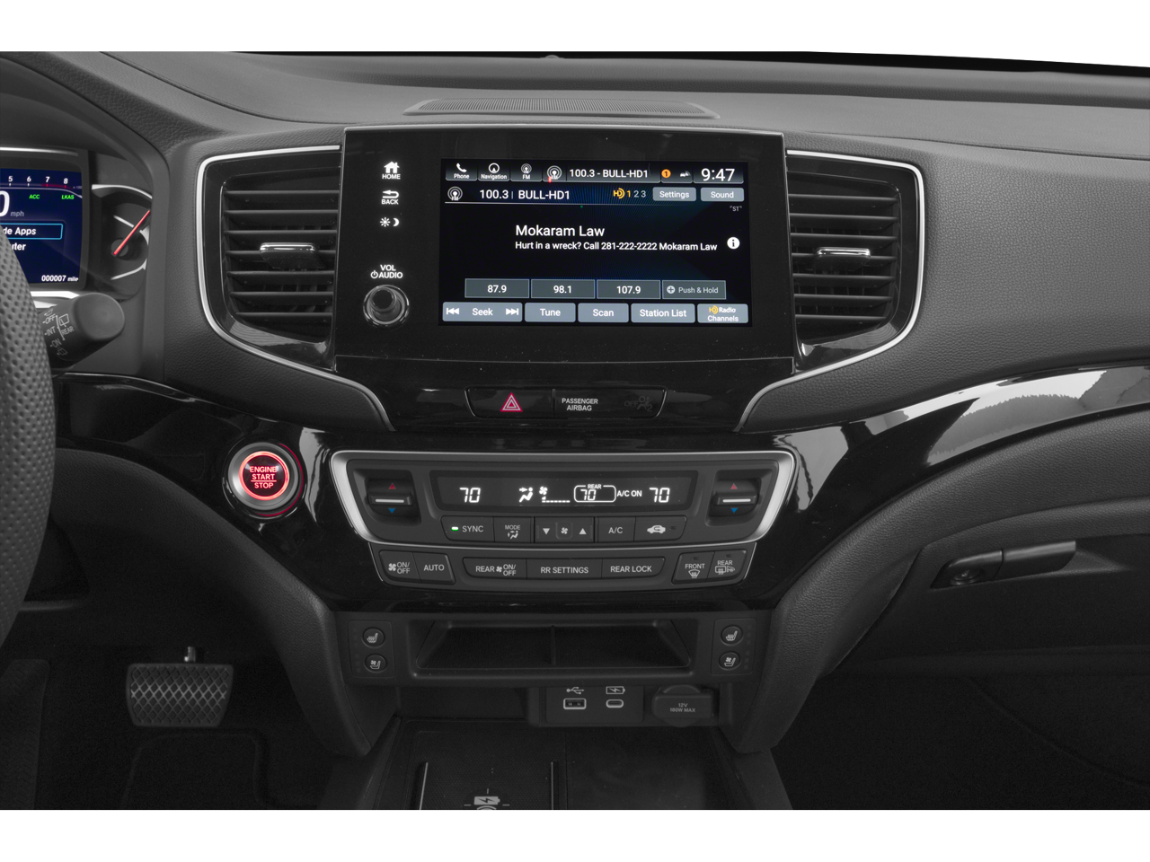 - Radio: 540-Watt Premium Audio System w/10 Speakers -inc: subwoofer, 8" color touchscreen, Apple CarPlay compatibility, Android Auto compatibility, wireless phone charger (Qi), SiriusXM, HD Radio, Bluetooth® streaming audio, speed-sensitive volume compensation (SVC), (1) 1.5A USB-A data port, (3) 3.0A USB-C charging ports, Honda satellite-linked navigation system w/voice recognition and Honda HD digital traffic, HondaLink and Wi-Fi hotspot capability SiriusXM requires a subscription after any trial period. Wireless phone charger is compatible with both Qi and Powermat wireless charging standards. Check with your device's manufacturer for wireless capability. Check the HondaLink website for smartphone compatibility.